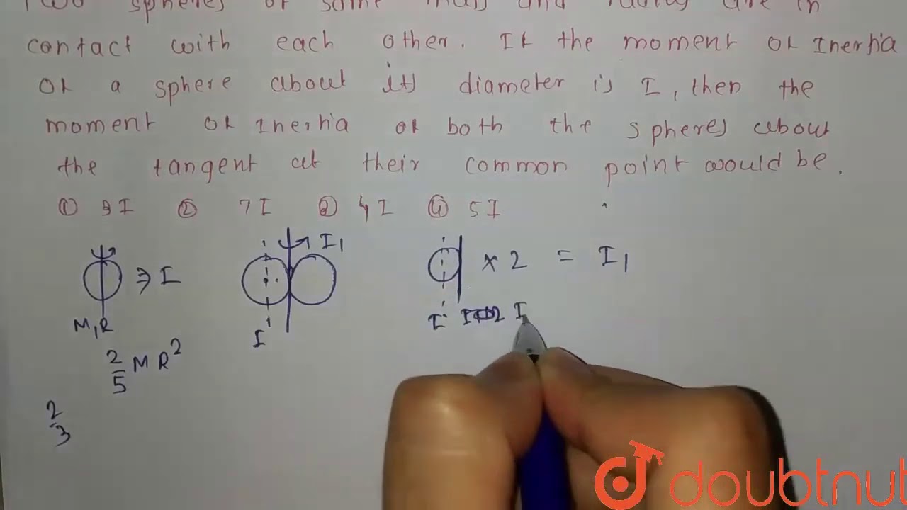Two Spheres Of Same Mass And Radius Are In Contact With Each Other If The Moment Of Inertia Of A Sphere About Its Diameter Is I Then The Moment Of Inertia Of
